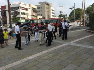 街頭で署名運動を行い、その後慰霊祭に参加しました。